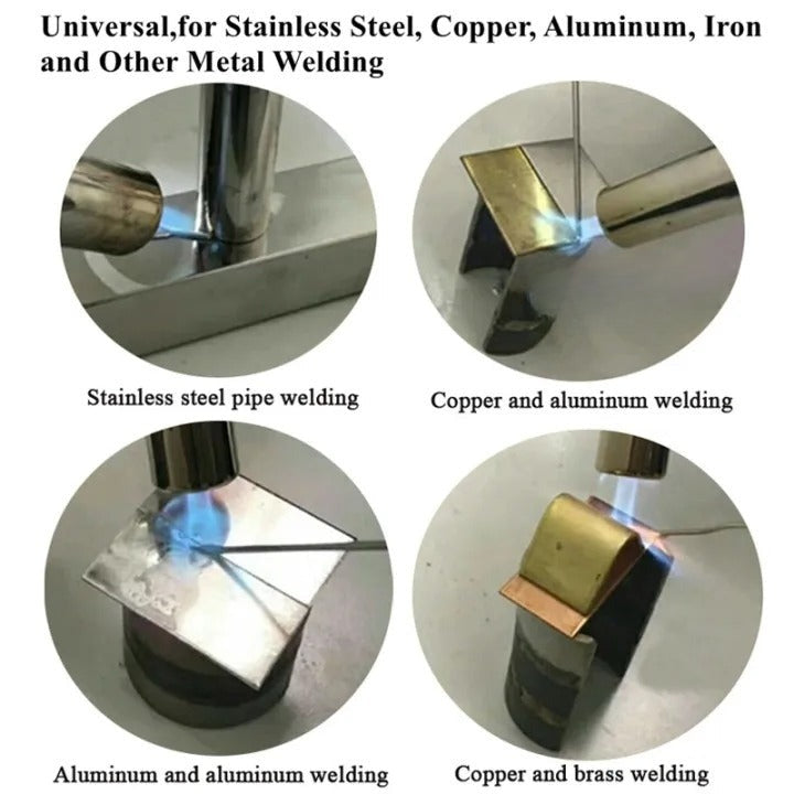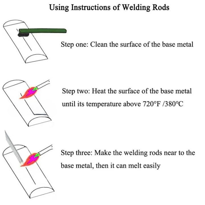 Welding: firsst use sandpaper to polish brass and aluminum tube welding parts (must to clean metal surface's paint, oxide, oil, etc), moving the guns to be heated evenly welding parts, and then continue to use the electrode to be welded When the temperature rises to 360 degrees, the copper and aluminum welding rod to melt and evenly into the joint, Remove the torch after the weld is full , waiting cooling is OK. No further treatment after cooling, flux residue is visible but not corrosive, non-hygroscopic and firmly attached.