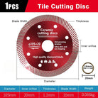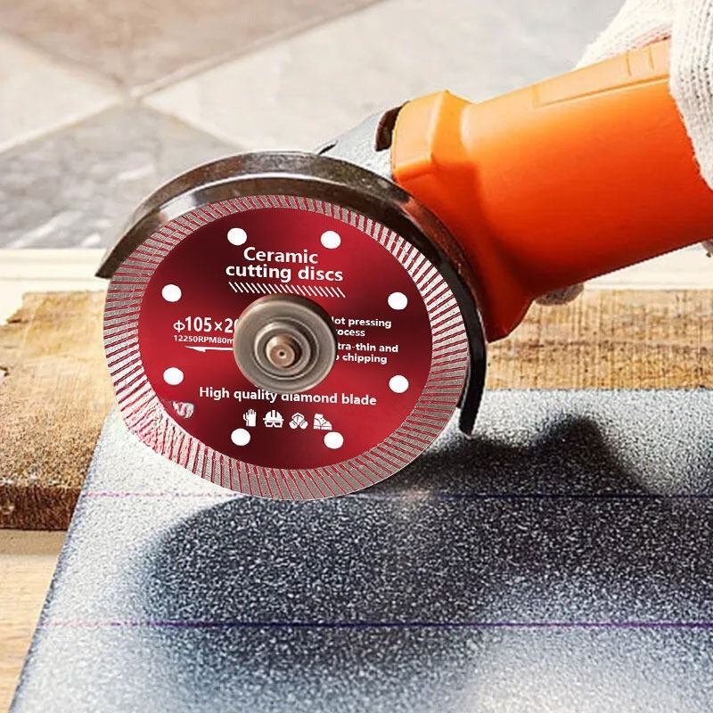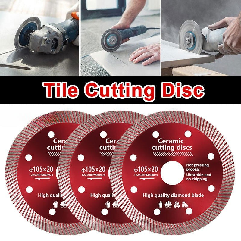 Outer diameter: 105MMInternal strength: 20MMThickness: 1.2MMProvide you fast, precise, smooth and chip-free cutting experience with Ultra-fine corrugated tile cutting discs masterMatch with hand-held machine and Works with Tile Saw and Angle GrinderThe blade is excellently wear-resistant and can withstand frequent use. It is widely used in marble and ceramic cutting. It is a high-performance blade that adopts advanced cutting technology, combined with precision grinding technology and high-strength heat treatment technology. Likewise, it can achieve fast, stable and accurate cutting effects, improve cutting efficiency, reduce cutting time, and improve the service life of the blade. The blade allows you to use it for a long time. It is an ideal choice for you to cut ceramic marble.Universal for dry or wet cutting.Super thin turbo mesh rim diamond blade provide fast, precise, smooth and chip-free cutting experience for you.Reinforced core steel provides more stable cutting and a Stiffening flange in center ensures rigidity and straight cutsSmooth cutting surfaceThe blade adopts fine sand grinding technology, which can effectively improve the cutting efficiency, and can effectively reduce the heat loss in the cutting process, making the cutting surface smoother and more accurate.High-strength diamond bladeThe main body of the blade adopts selected high-strength diamond blade, which has the characteristics of high hardness and strong toughness. The blade is covered with high-density emery, which is sharp and durable.Premium Diamond saw blade for Wet or Dry Cutting and uesd as porcelain tile blade, ceramic tile blade, granite blade,nature stone and other thin masonry bladeWear-resistant and durableIt also adopts high-strength heat treatment technology, which can increase the wear resistance of the blade and improve the service life of the blade. At the same time.Thicker center to avoid vibrations and wobbling. High Performance diamond matrix provides long life and enhanced material removal.Lightweight and ultra-thinThe blade is ultra-thin and sharp, making the cutting process effortless and efficient.SpecificationOuter diameter: 105MMInternal strength: 20MMThickness: 1.2MMProcessing object: ceramic tile and stoneApplicable models: angle grinder, marble machinePackage Includes:1* BladeNotes1. Always wear protective gear when using the Marble Ceramic Cutting Blade.2. Keep the blade away from children and pets