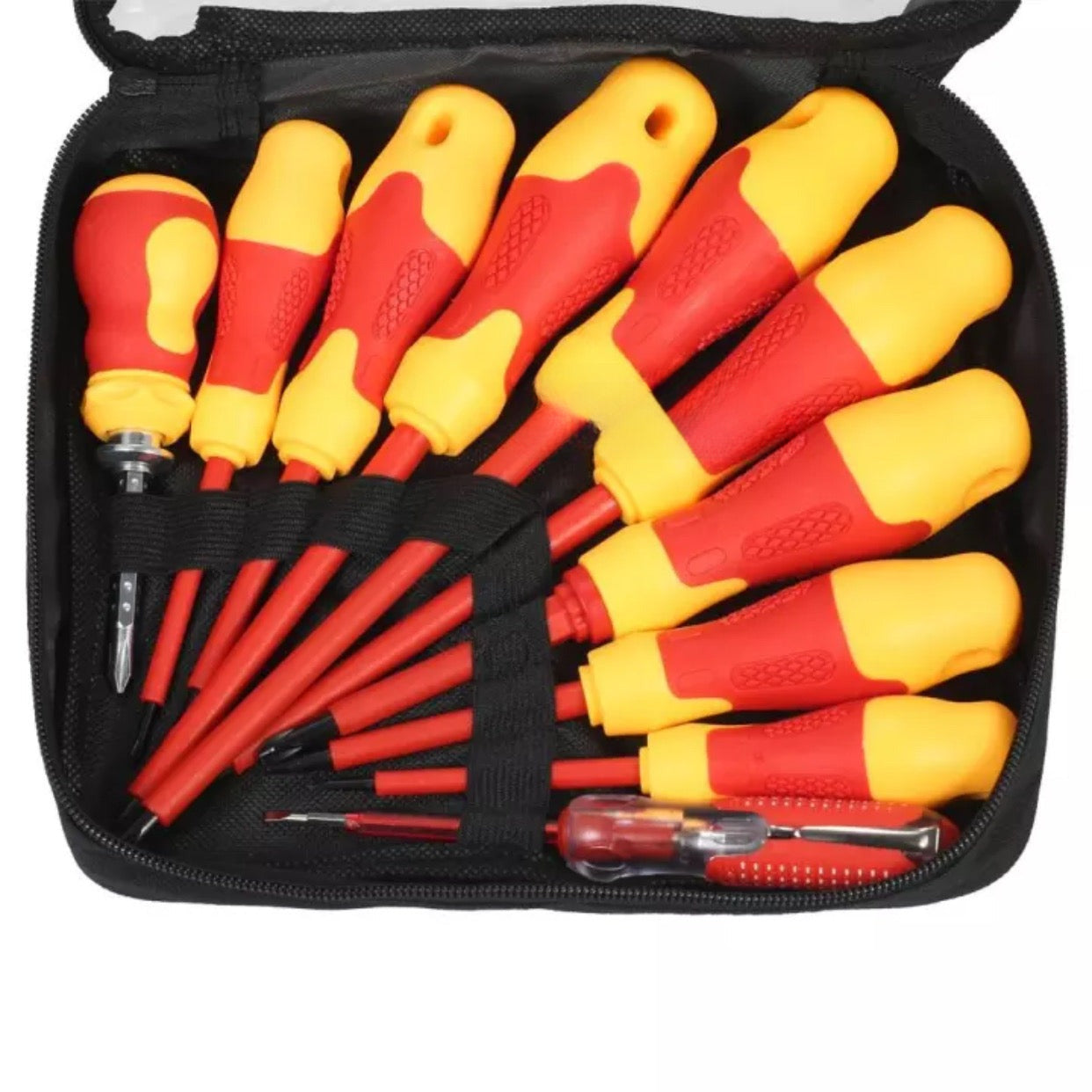 10pcs 1000V Insulated Screwdriver Set with Magnetic Slotted and Phillips Bits Soft Grips Electricians Electrical Work Repair Tools