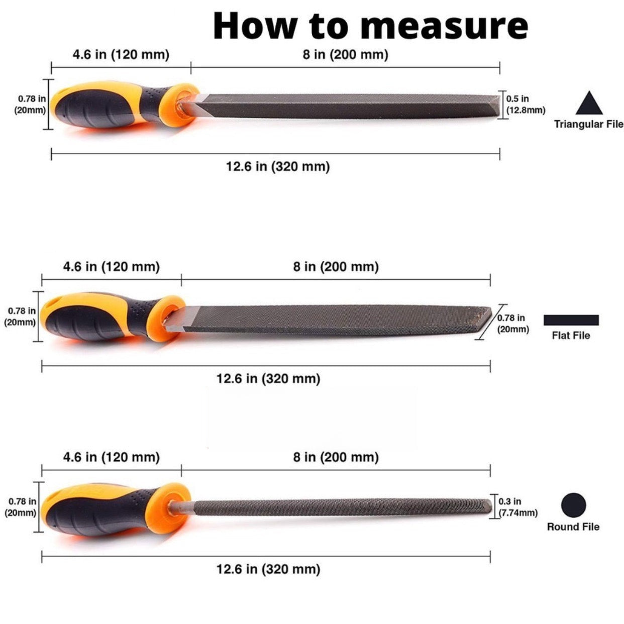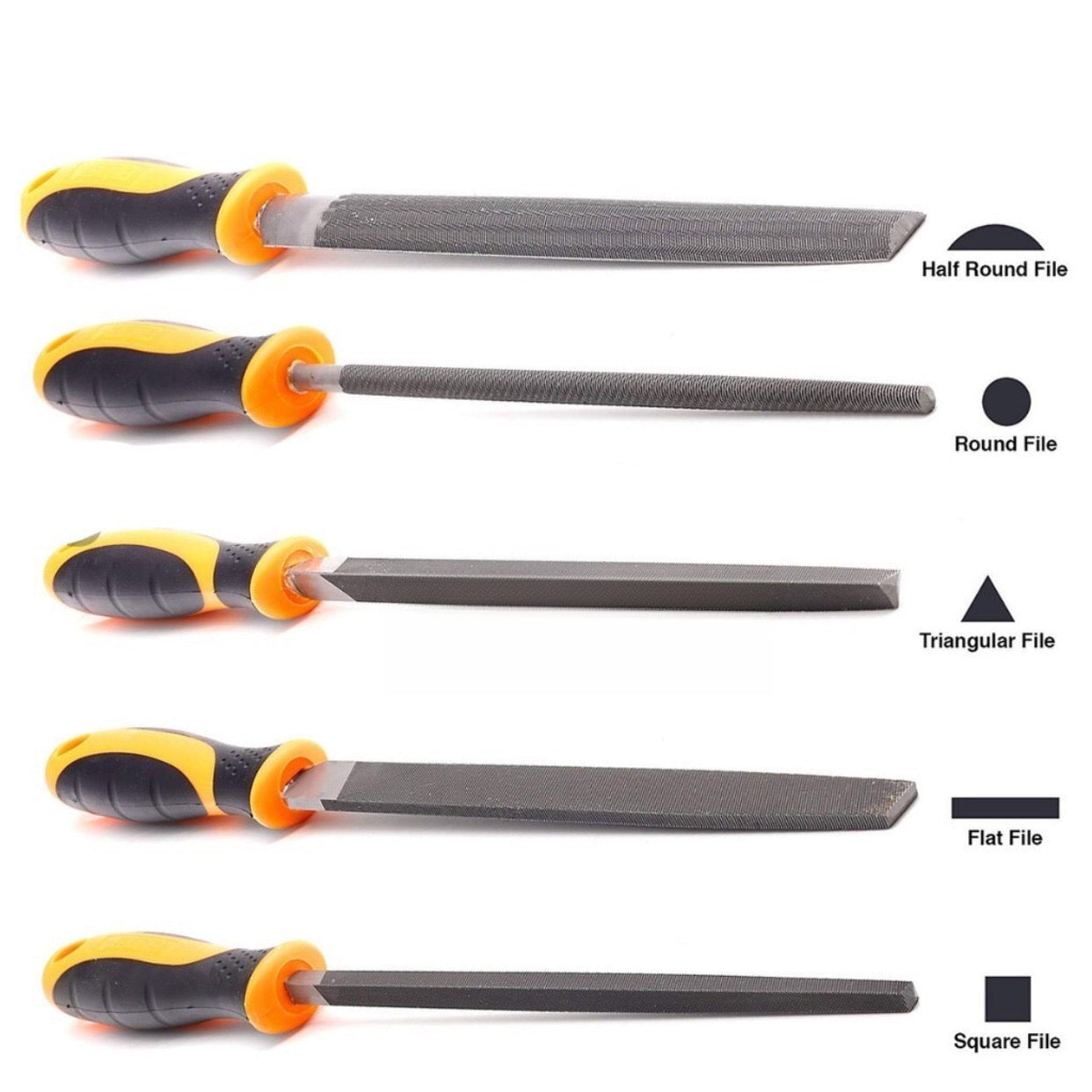 - Quantity: 5-Piece, including Round File, Half-Round File, Square File, Triangle File, Flat File