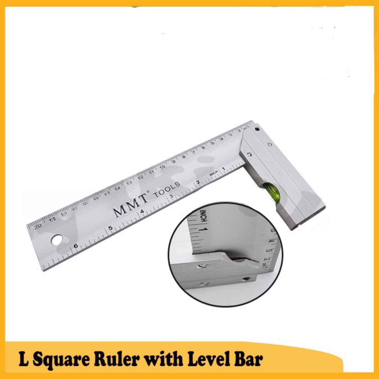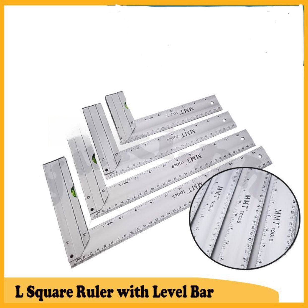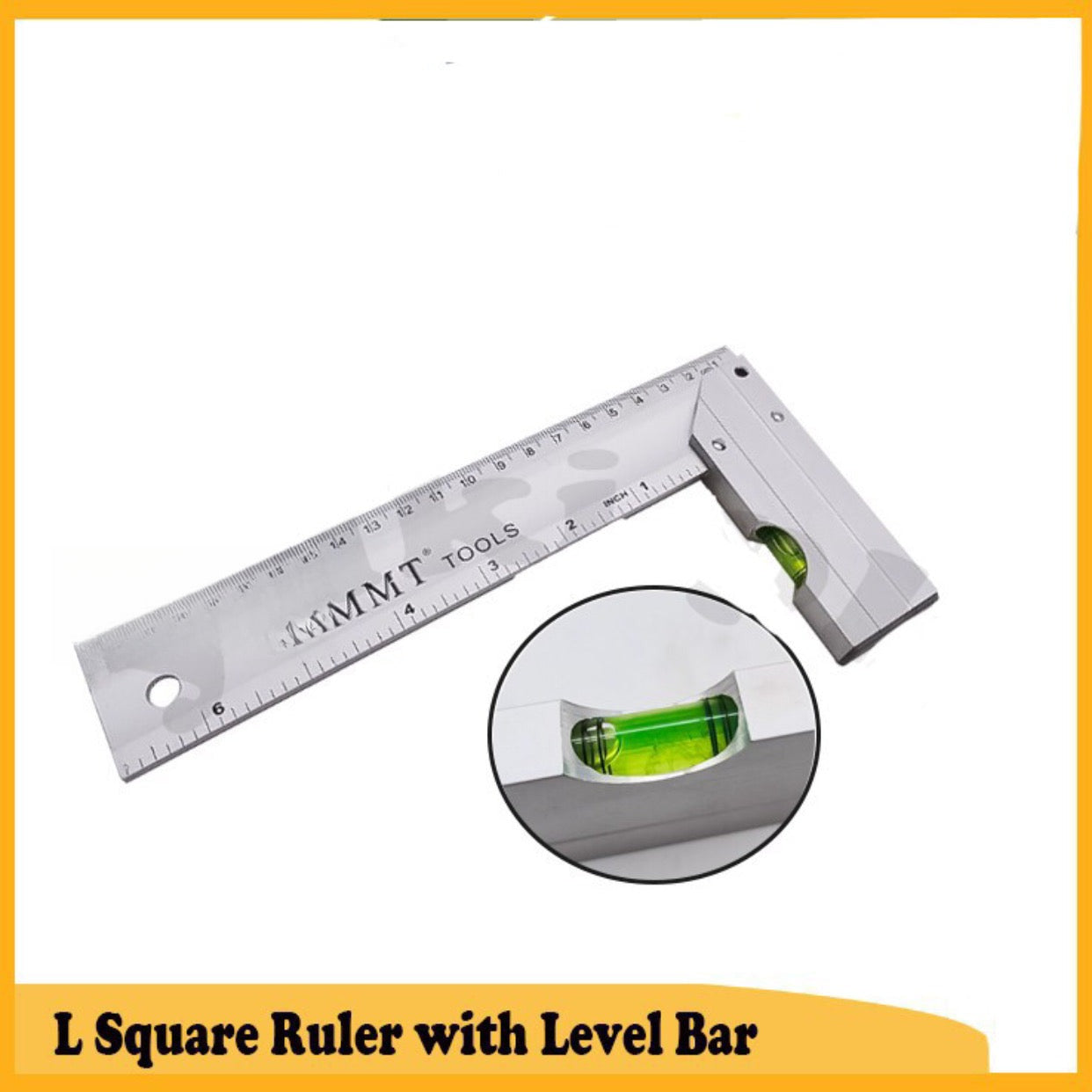 - The Aluminum Squala L-Square Angle Ruler with Level Bar provides precise measurements with its high-quality design and level bar feature.