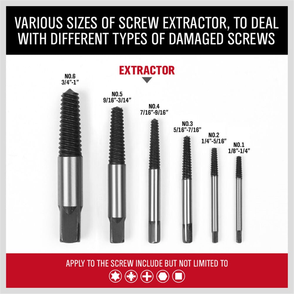 - These extractors will remove most kinds of damaged, stripped, rusted, broken, or stuck screws from any wood or metal surface with relative ease.