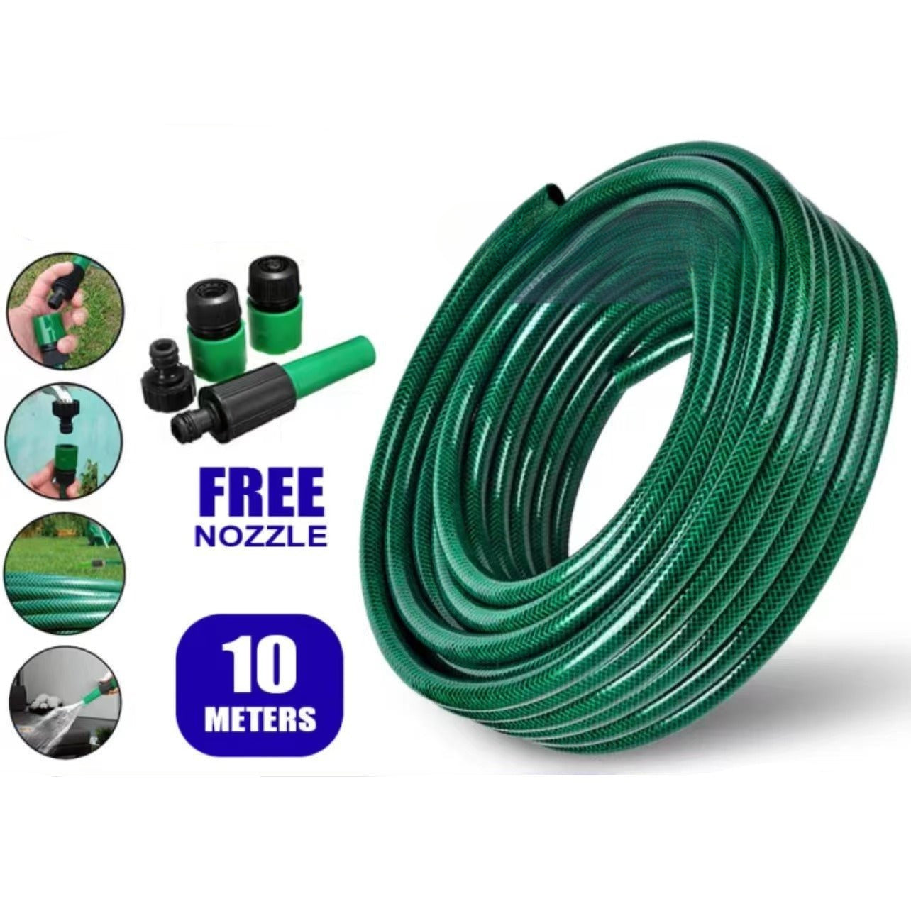 Heavy Duty 10 Meter PVC Garden Hose for Gardening and Cleaning with Free Water Hose Nozzle
