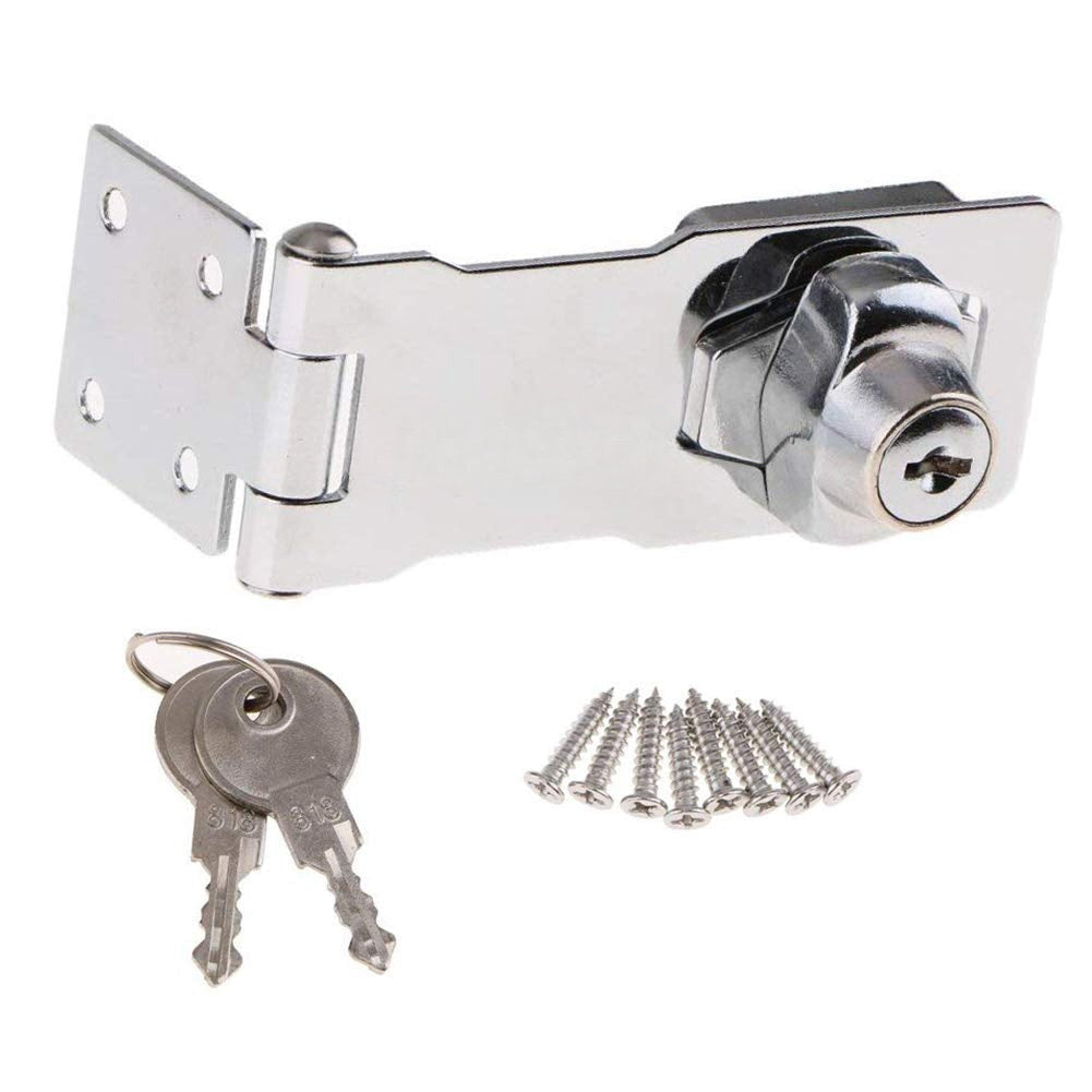 Details[MATERIAL] - Made of zinc alloy with brushed finish for long-lasting durability and high strength.[KEYED ALIKE] - The keyed hasp lock is keyed alike, each lock comes with 2 keys.[FEATURE] - Only when the key returned to 90 degree, it could be removed.[EASY TO INSTALL] - Installation is quick and easy with some simple household tools and screws required. Can replace the old locks, easy to install and convenient to your life.[APPLICATION] - The keyed hasp lock can be used to secure a variety of small items, including small doors like cellar doors, cabinets, drawers, tool boxes, mailboxes, lockers and much more