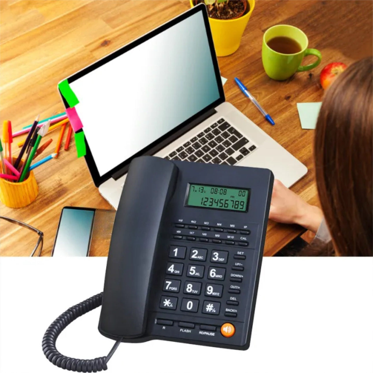 LCD Corded Caller ID Telephone with Speaker Home Office Wired Landline Telephone Set Phone Caller