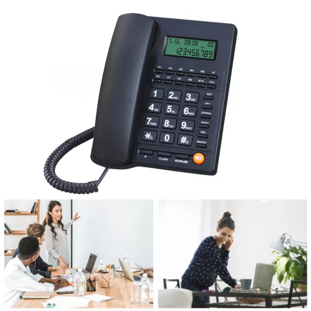 Function and practical: This wired phone includes caller ID, phone number recording, ringtone high/low adjustable, alarm, calculator, flash, pause and redial functions. It also has 10 stored numbers, which can store some important contacts for quick dialing.