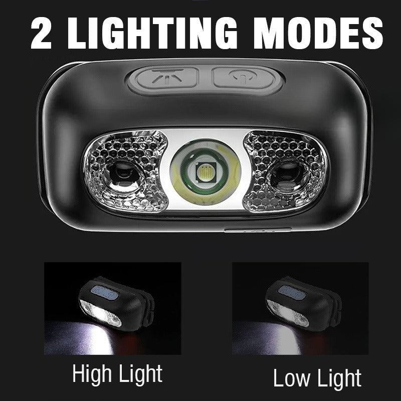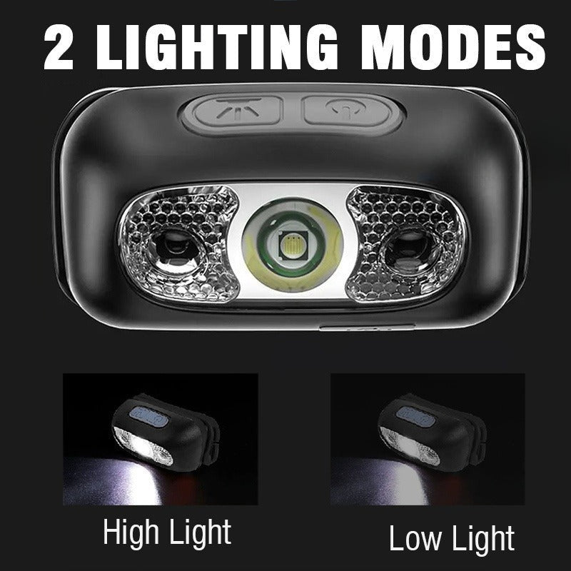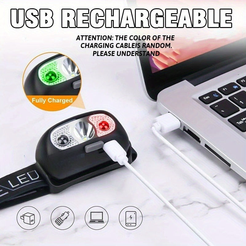 Mini Super Bright LED Headlamp USB Rechargeable Motion Sensor Headlight Outdoor Waterproof Torch
