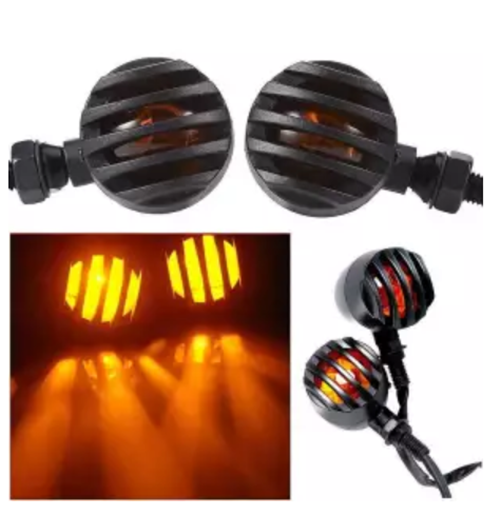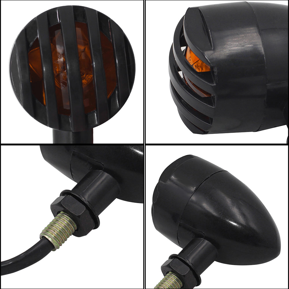 Motorcycle Signal Light CNC Aluminum Amber Bullet Grill LED Turn Signal Light Universal Waterproof 1Pair