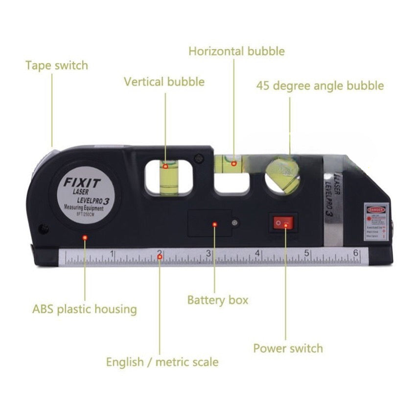 - Combines fine-tuned tape measure, triple-positioned leveling bubble and a NEW laser level to provide maximum results