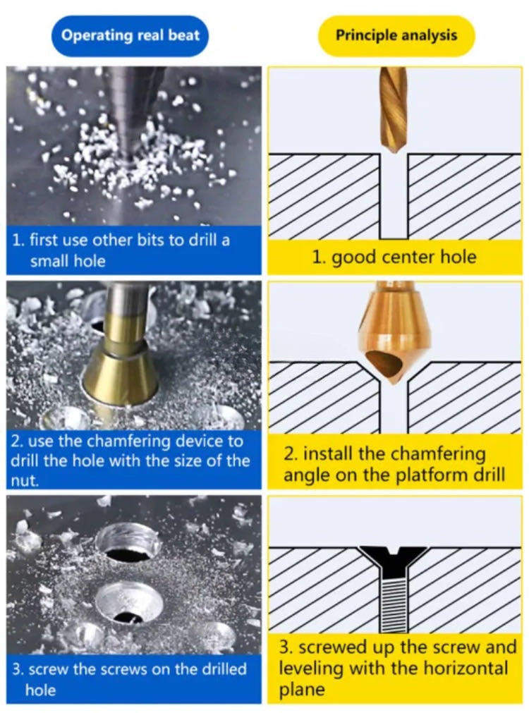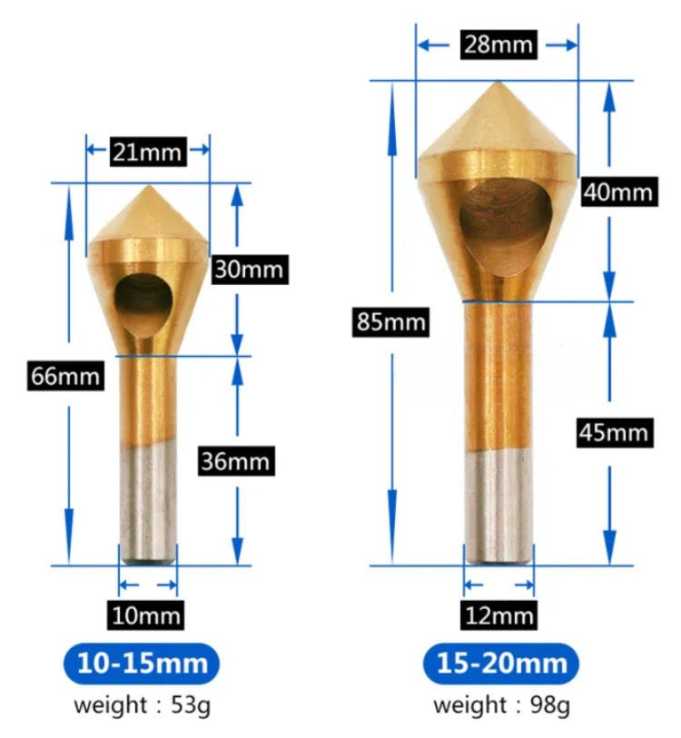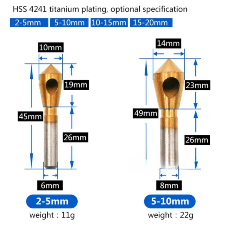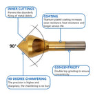 Oblique Hole Chamferer, 4pc HSS Titanium Plated Reverse Taper Hole Countersink Drill Bit Deburring Drill Taper Hole Cutter Countersunk Head Chamfering Tools