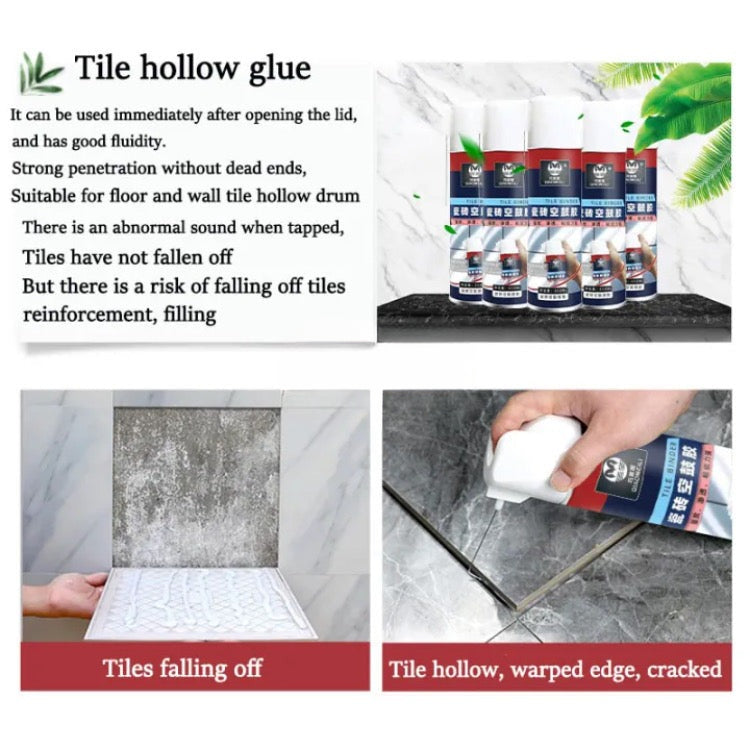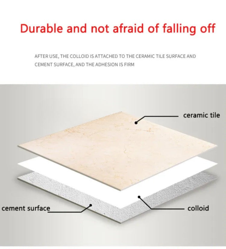 - This glue uses strong adsorption force to fix tiles, basins, and cracks. And it’s so simple to use — apply it just like a regular paper paste. Plus being in bottle makes it ideal for repairs, installations, & renovations.