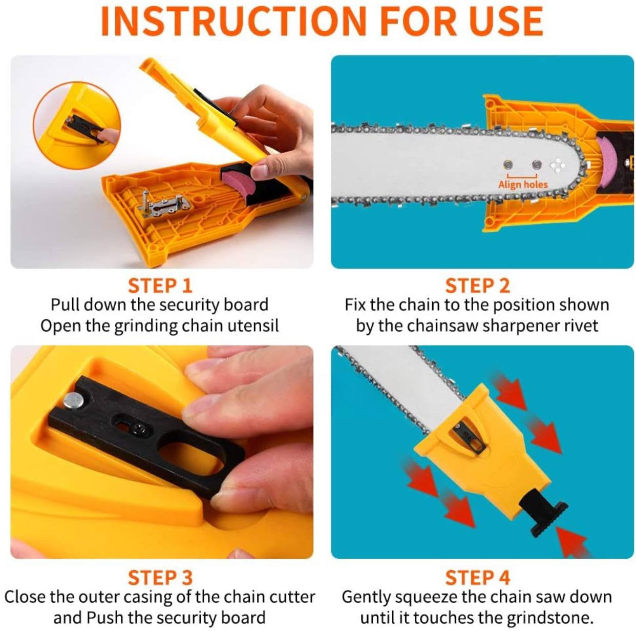 -just attach the chainsaw on the two holes and lock the sharpener, then your chainsaw will become sharp just in 3-