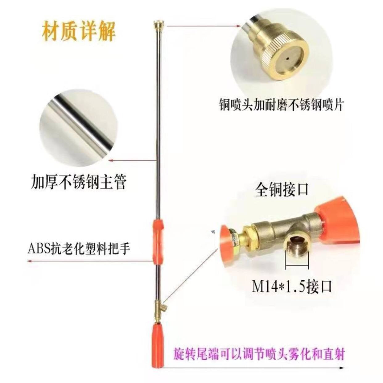 About the spray head: the original copper spray head of the spray gun is used to spray fine mist, mainly used for spraying pesticides, or watering plant seedlings