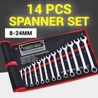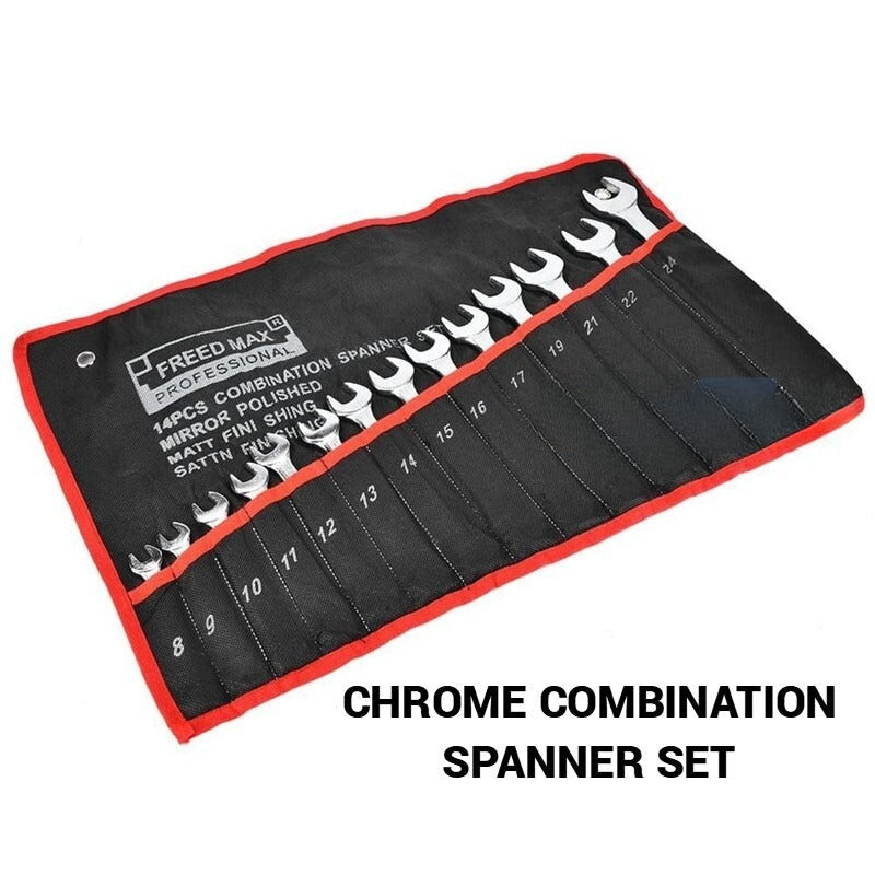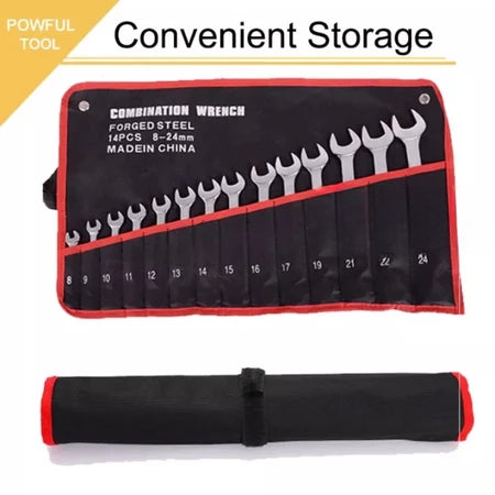 What’s in the box 14pcs Heavy Duty Combination Wrench Spanner Set Car Repair Box Tools 8-24mm