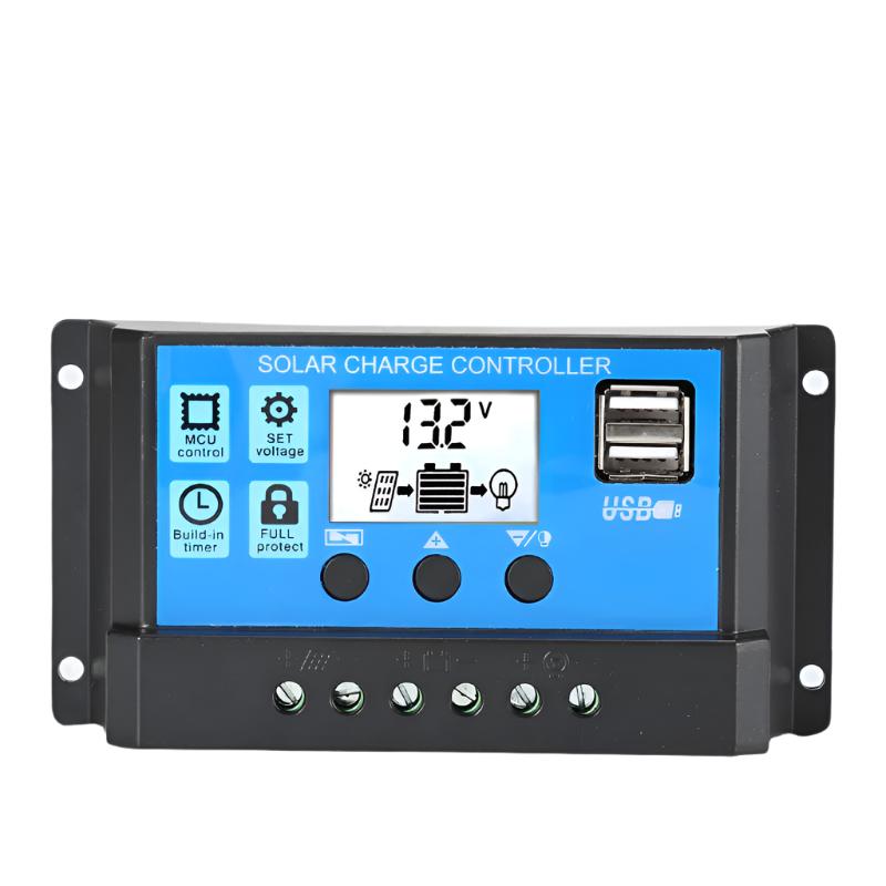 30A PWM Solar Charge Controller 12V/24V Battery Regulator Solar Panel Controller LCD Display with Dual USB Port