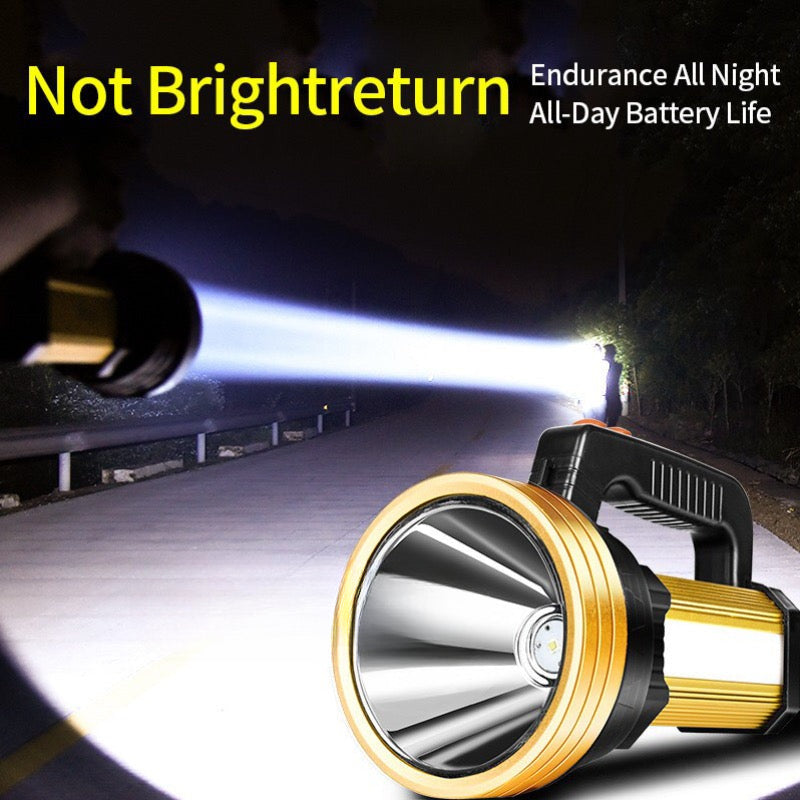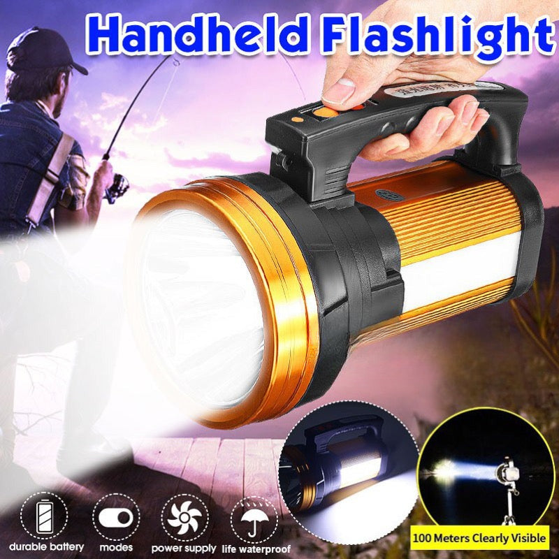 Rechargeable Handheld LED 3KM Spotlight Portable Flashlight Super Bright High Powered Searchlight Large Lithium Battery Camping