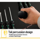 The black head with a magnetic tip is convenient to attract the engraved tapping at the bottom of the screw. It is specially