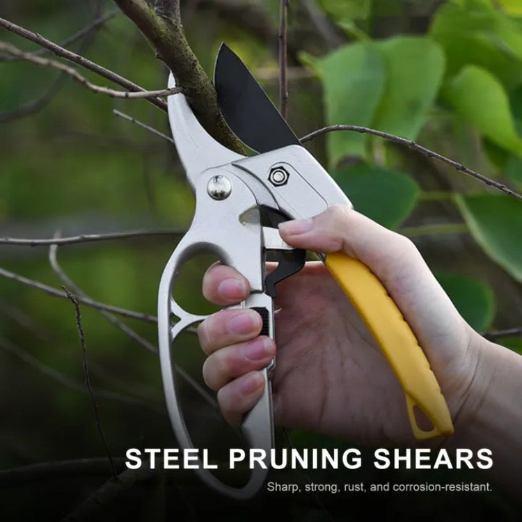 - Introducing the Secateurs Steel Blade Pruning Shears, designed for pain-free pruning with an ergonomic handle and shock-absorbing pads to reduce hand and wrist strain.