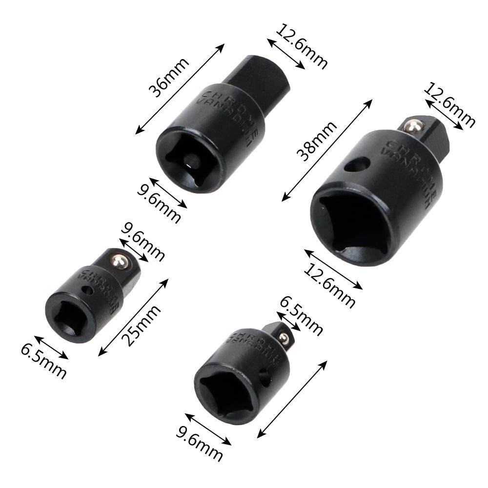 - 3/8 "to 1/4" - (9.5mm square hole to 6.3mm square head)