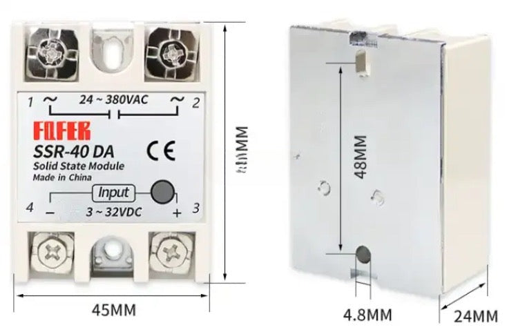- Product name: solid state module relay SSR-40DA, 3-32VDC/24-380VAC.