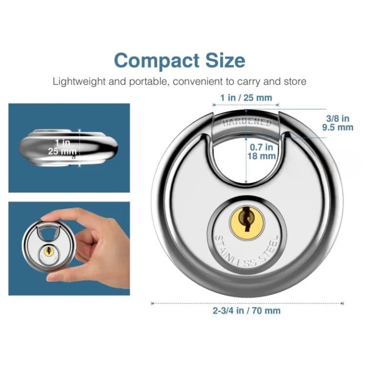 Stainless Steel Anti-Theft Padlock Disc Round Lock for Warehouse Door Bicycle and Window
