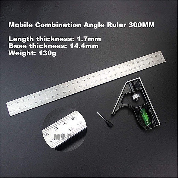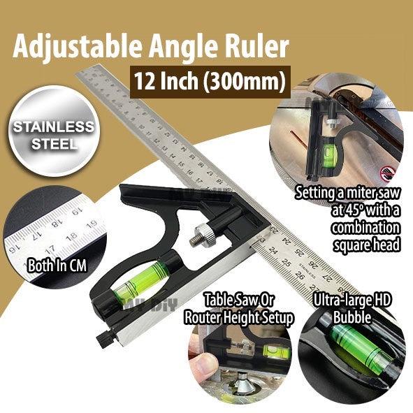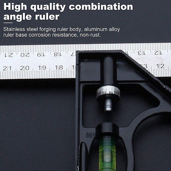 Stainless Steel Combination Square Ruler Level Gauge Angle Metric Ruler Adjustable Angle Ruler