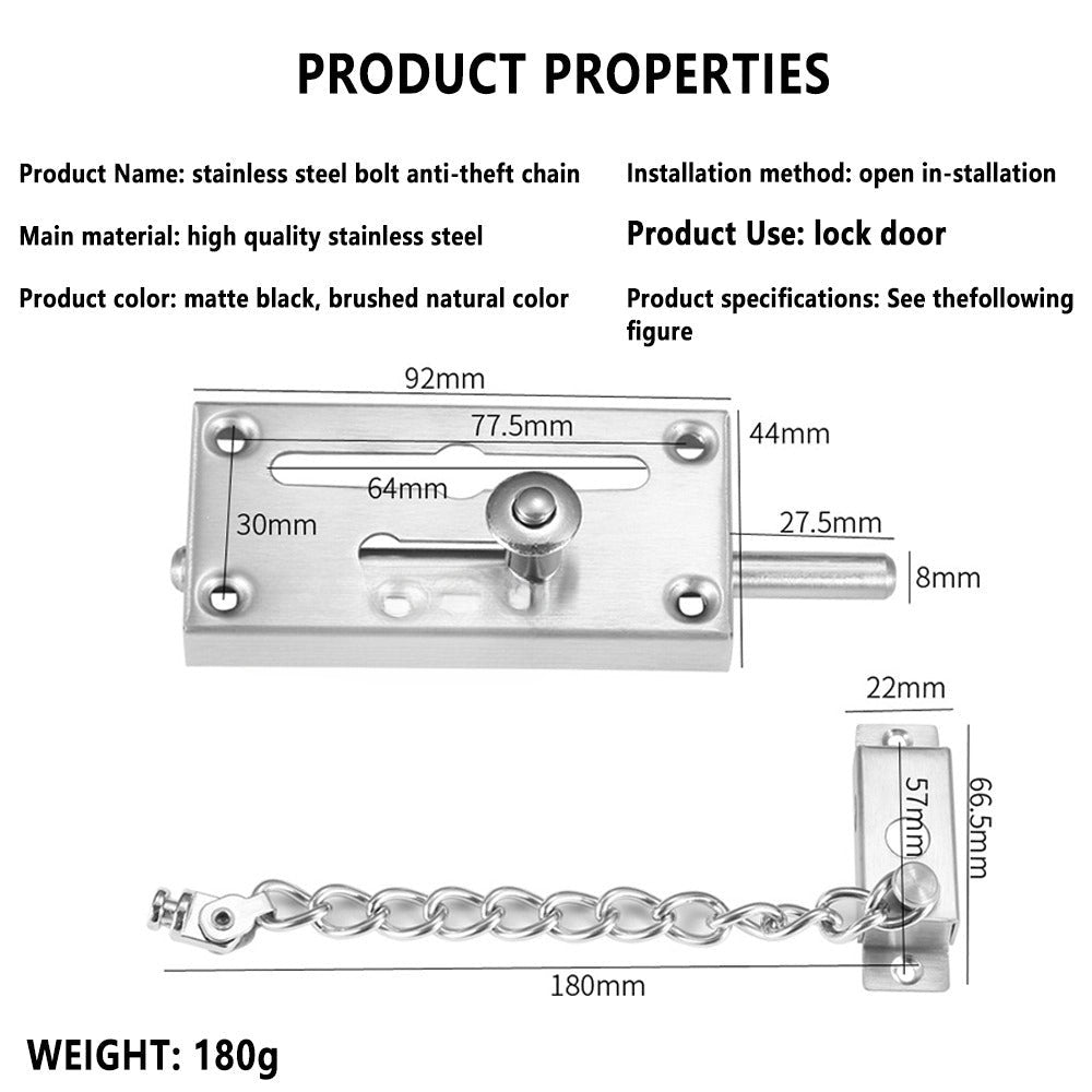 Specifications of Stainless Steel Home Window Door Security Chain Bolt Guard Bolt Lock