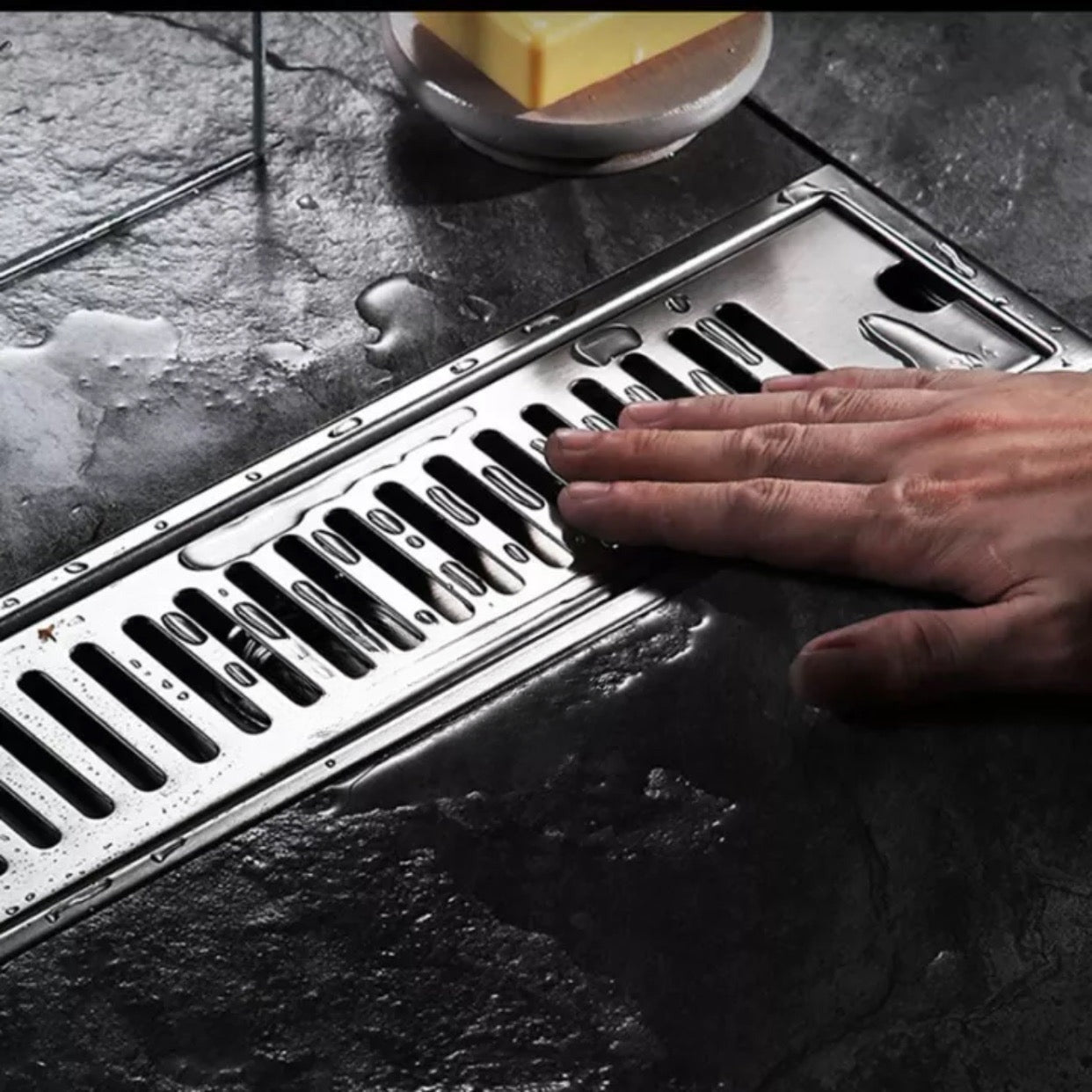 Stainless Steel Rectangular Floor Drain Bathroom Thickening Shower Room Deodorant Balcony Large Displacement Strip Floor Drain