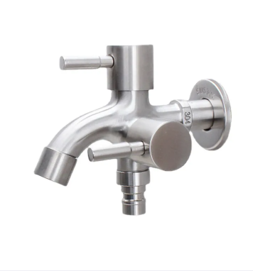 SUS304 Stainless Steel Faucet Two Way valve Faucet 1 in 2 out Head Water Bathroom Kitchen Wall Mounted Faucet Mop Sink Washing Machine Universal Faucet