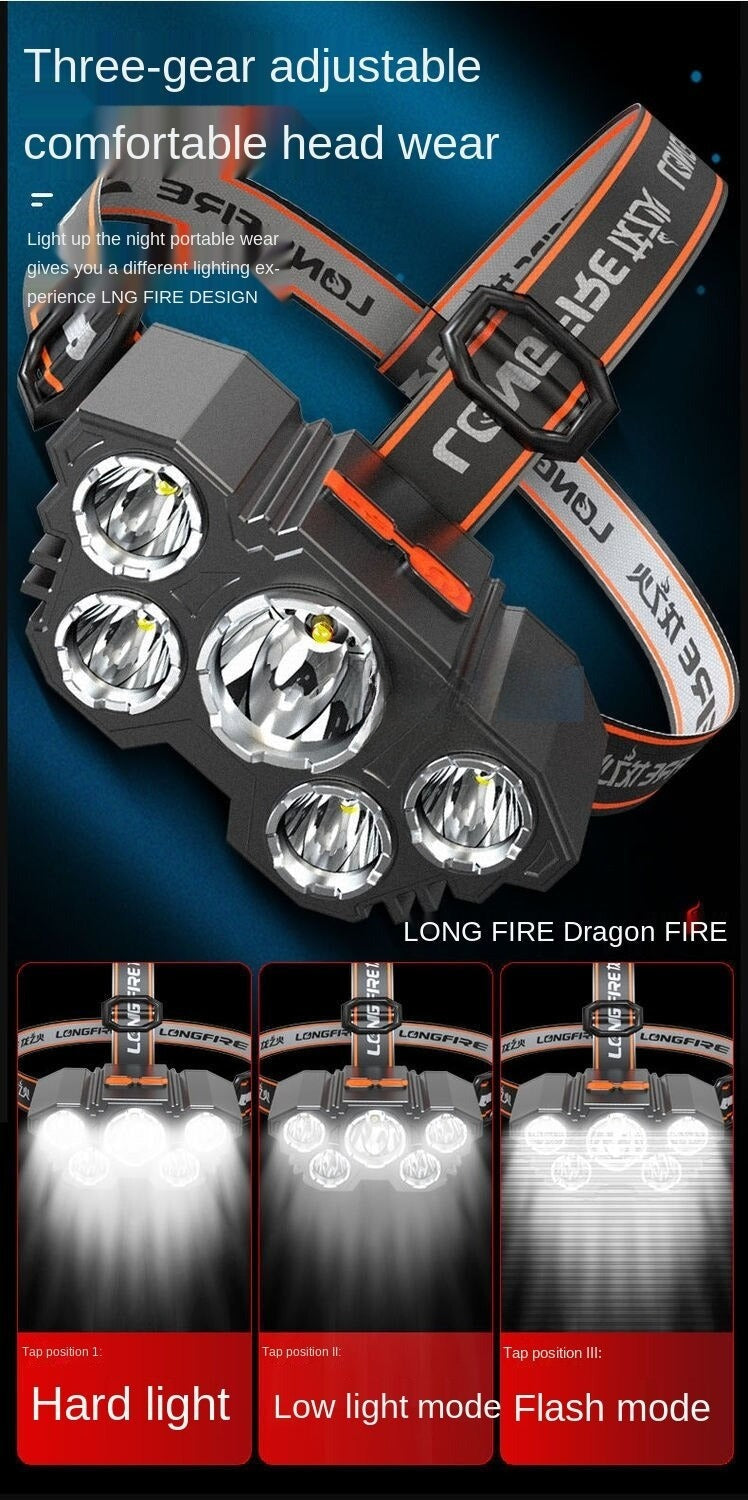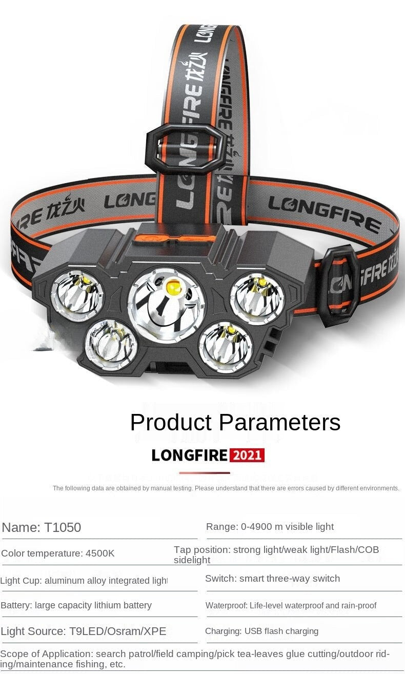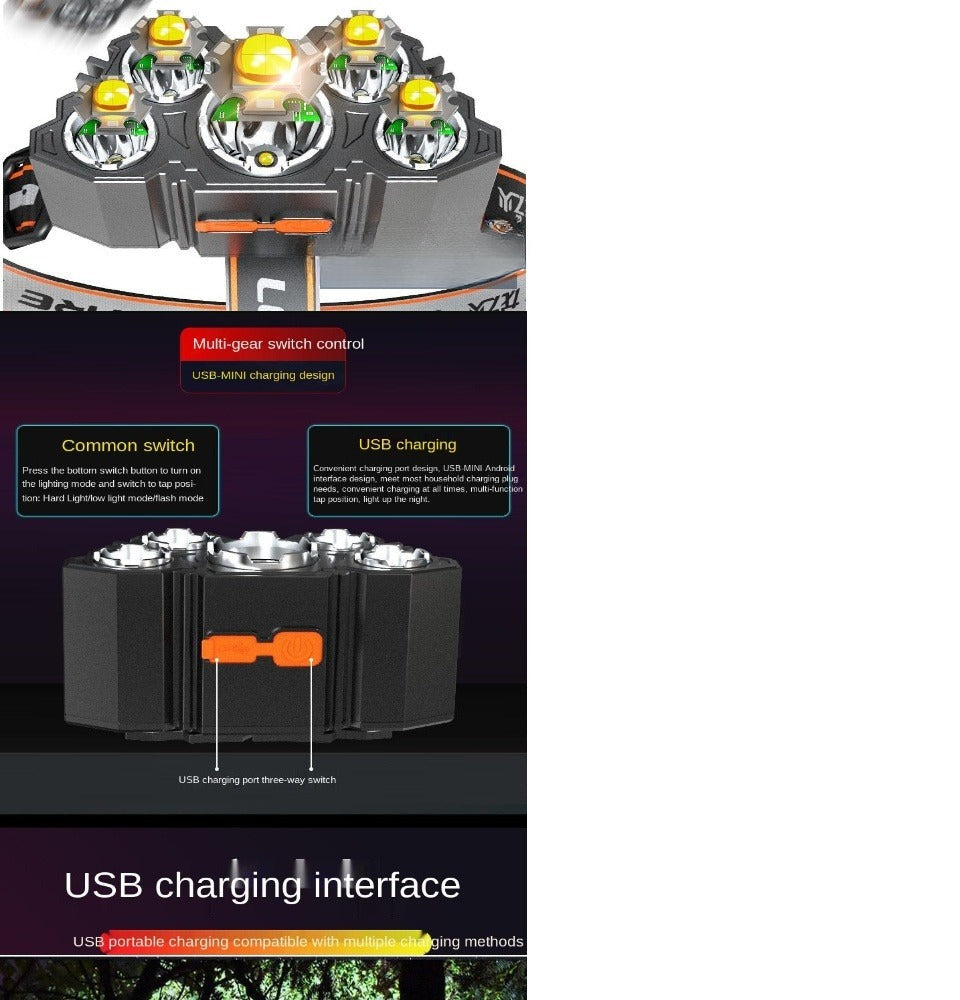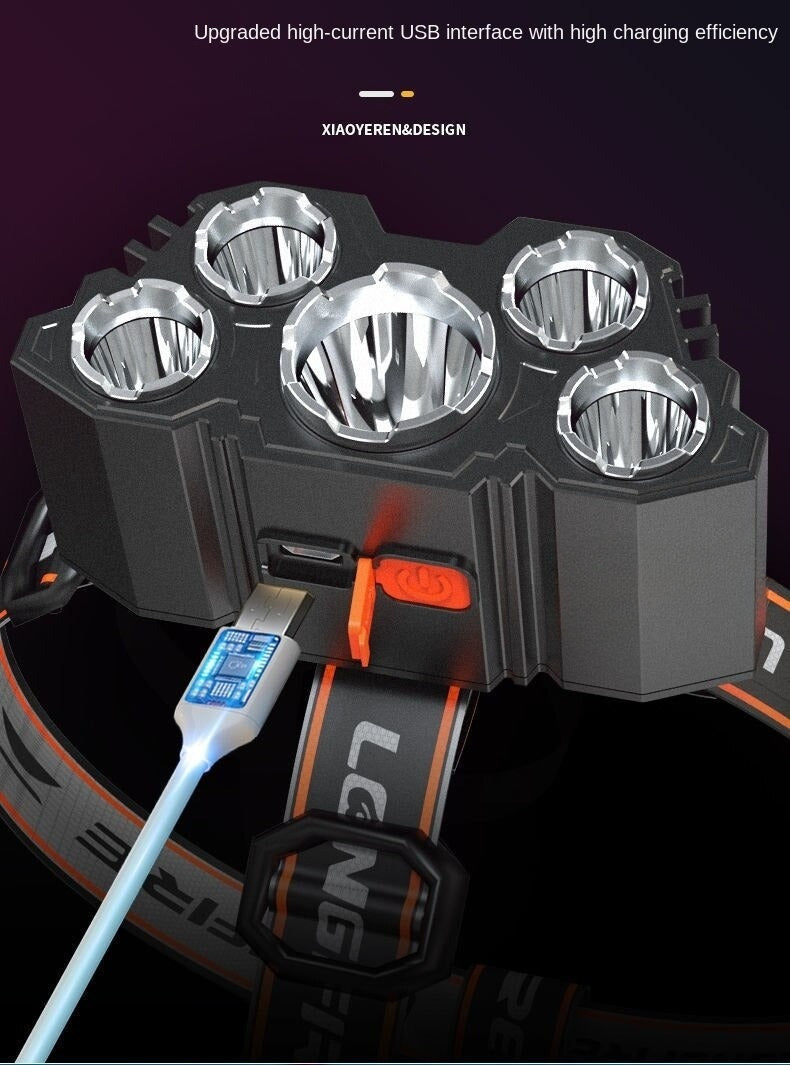 T21 head lamp Five heads Ultra Bright Headlamps USB Rechargeable fishing Headlight Outdoor Camping LED powerful Headlamp Light