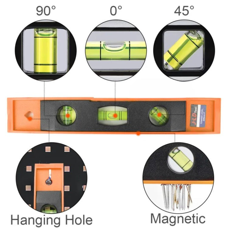 Mini Magnetic Spirit Level 225mm Water Pass Magnet Torpedo 9 Inch (0-45-90 Degree) Magnetic Spirit Level
