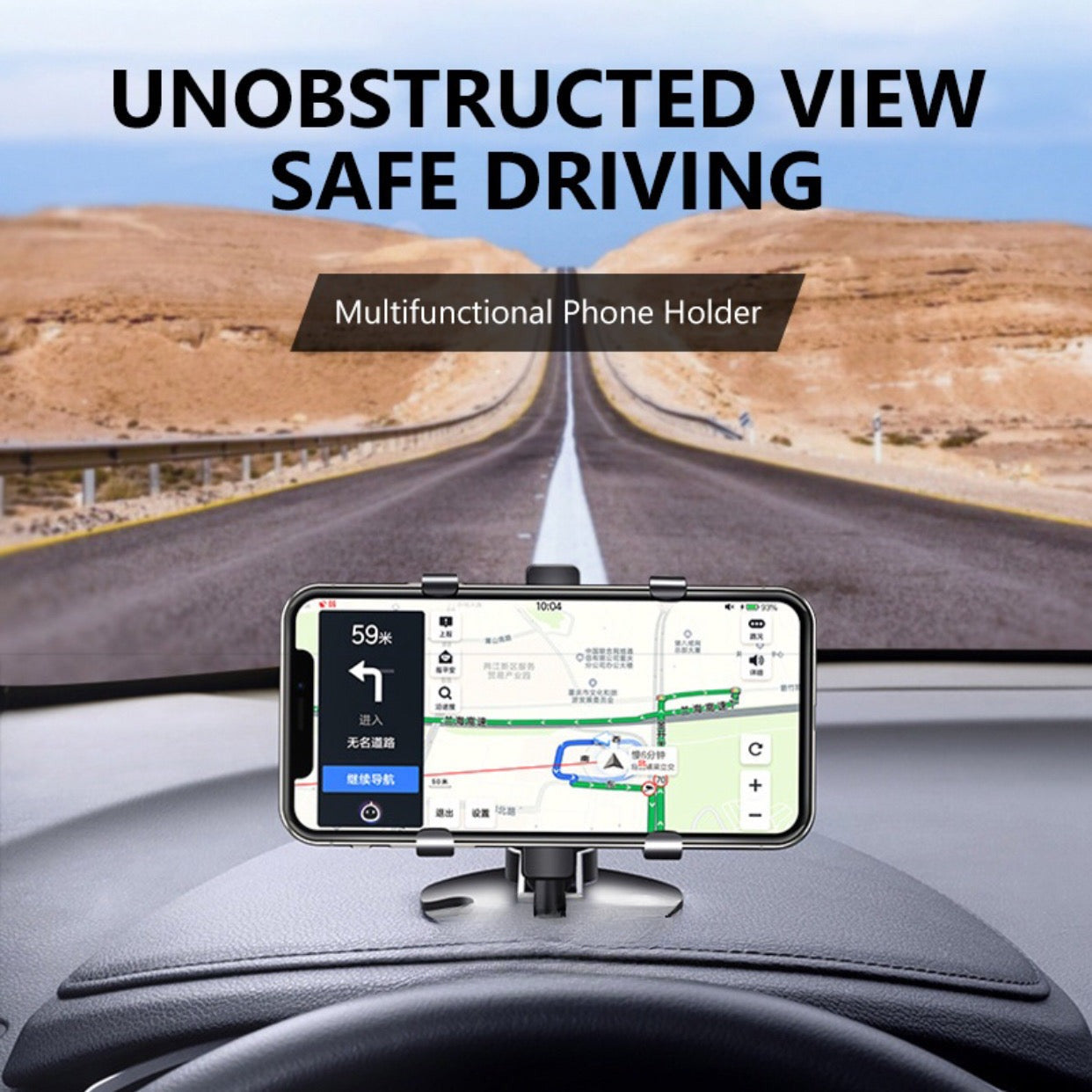 360° Rotation Car Phone Holder- Dashboard clip phone holder for car, switch between horizontal and vertical screens at your will.