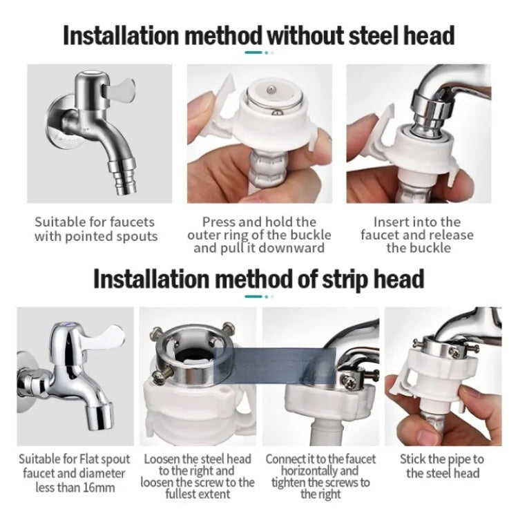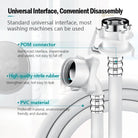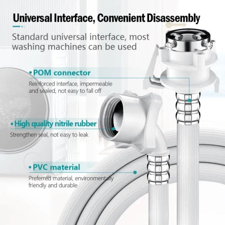 - Compatible with all brands of washing machines, this pipe connects easily to the water pipe and the inlet pipe.