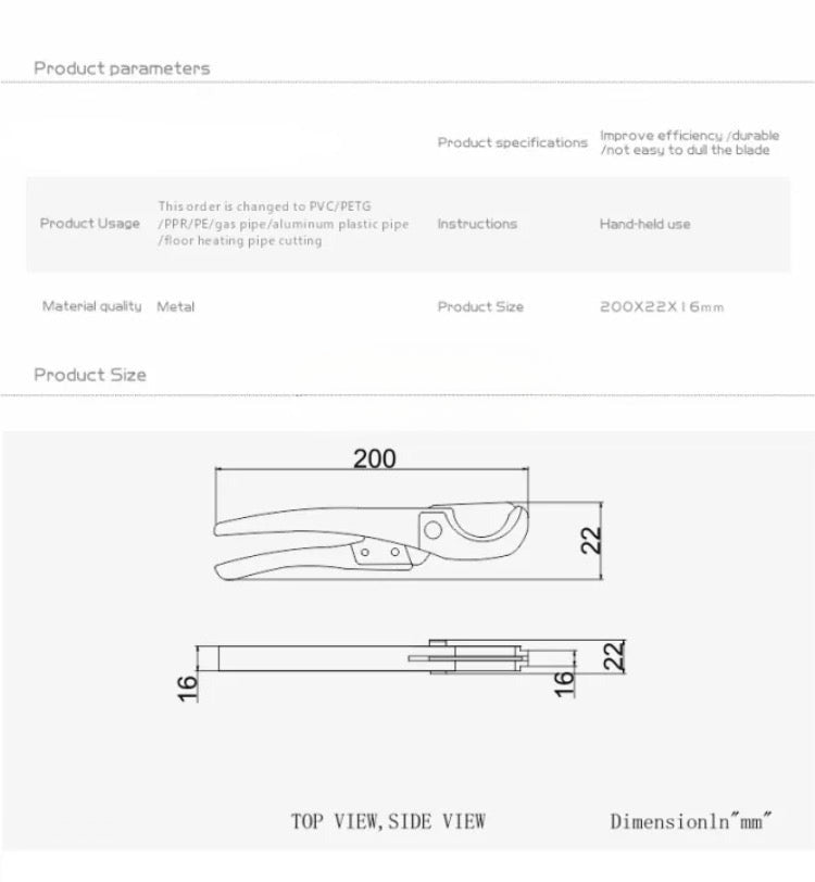 Water Pipe Tool for PVC PE PETG Tubing Quick Cutting / All Metal Material DIY Modify Accessory