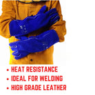 - EXTREME WEAR RESISTANT PROTECTION - The Gloves are made from 1.2mm thick and soft shoulder split natural cowhide leather which is heat resistant,wear-resistant,puncture resistant,cut resistant,oil resistant.Reinforced double leather stitching and high strength sewing on the palm of the hand,not easy to fall off.