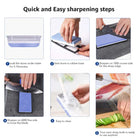 - Step 2: Fine grinding, a necessary step to eliminate burrs of the edge.Use more gentle pressure,repeat step 1, and repair the edge until smoothly and keenly. General speaking, use it once a week to keep yourblade sharp.