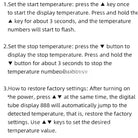 Press the down button once to display the stop temperature, long press the button for about 3 seconds, the stop temperature number will flash, and the desired temperature value can be set by the up and down buttons