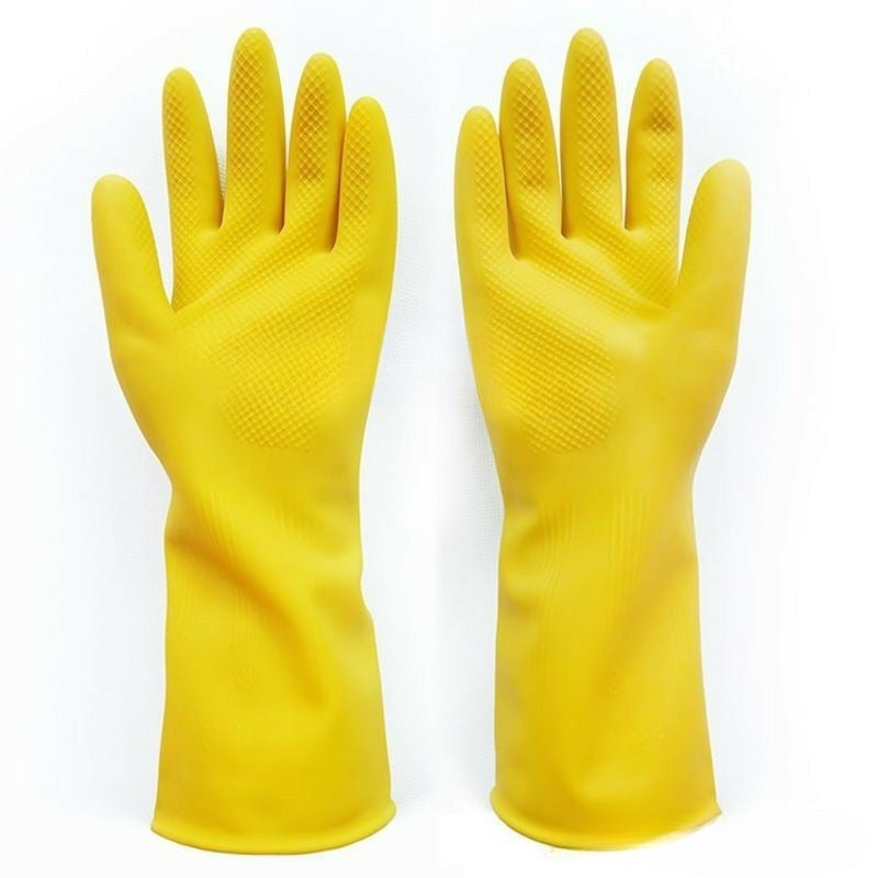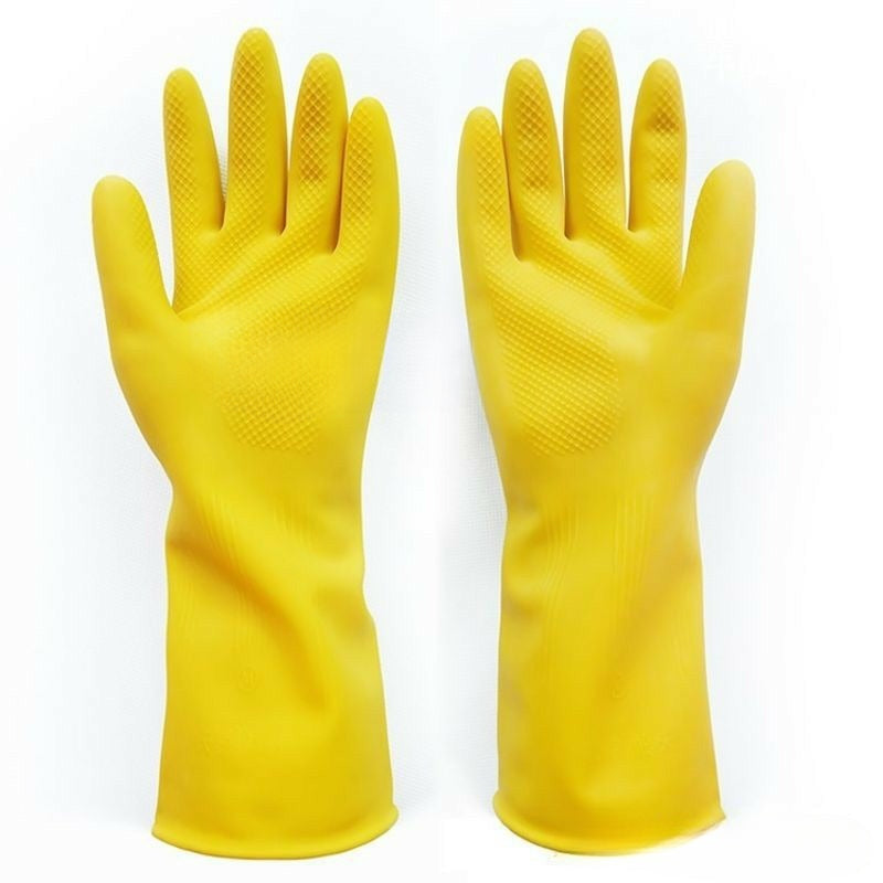 Yellow Rubber Latex Reusable Dishwashing Laundry Gloves Cleaning Gloves